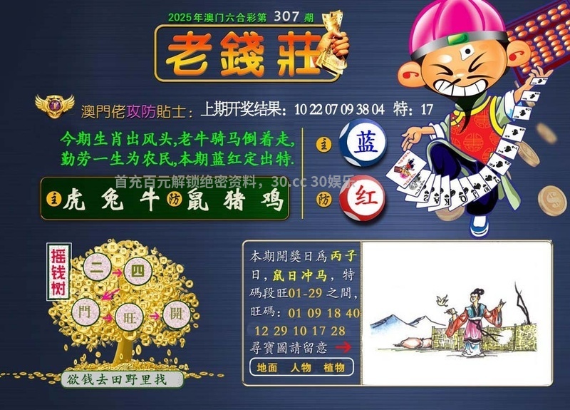 | 306期:七肖 | 兔狗牛龙羊虎鸡 | 開:牛17 |